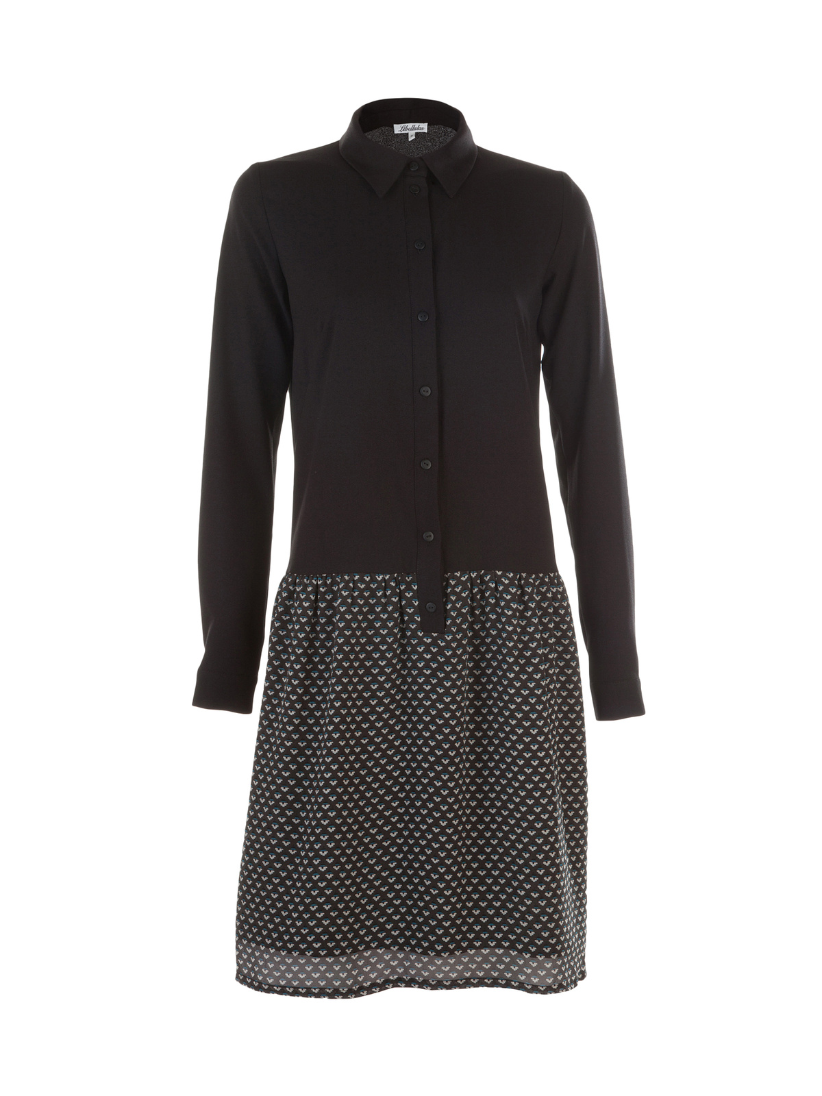 Черное платье можно дополнить бирюзовым удлиненным кардиганом, сумкой на цепочке и замшевыми лоферами на высоком каблуке.