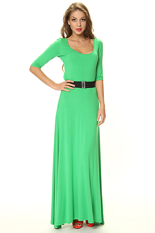 Описание: Макси-платье из текучей вискозы. Лиф с рукавами и большим декольте дополнен клешеной юбкой в пол.